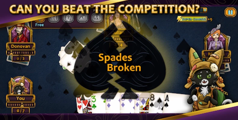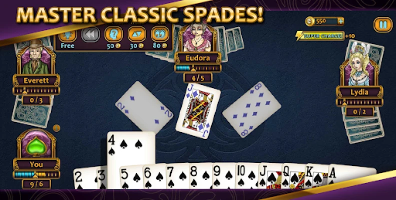 Aces® Spades کلاسک تاش کے کھیل Spades کو موبائل پر لاتا ہے۔ خوبصورت گرافکس، 5 مشکل کی ترتیبات اور 11 وکٹورین دور کے دلکش کرداروں کے ساتھ اپنی مہارت کو پرکھیں۔ اسے آن لائن یا آف لائن مفت کھیلیں اور ایک سیدھا سادہ، دلچسپ اور تفریحی اسپیدز کے تجربے سے لطف اٹھائیں۔