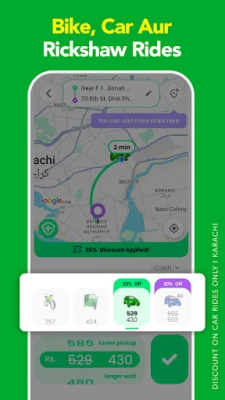 bykea کے ساتھ ادائیگی کے طریقوں میں لچک کا تجربہ کریں۔ Easypaisa, JazzCash, Raast، یا براہ راست بینک ٹرانسفر کے ذریعے کیش لیس ادائیگیاں کریں اور نقدی کے جھنجھٹ سے بچیں۔ کاروباری اداروں کے لیے، bykea کی 'Bill to Company' خصوصیت ملازمین کے سفر اور لاجسٹکس کو بغیر کسی پیشگی ادائیگی کے آسان بناتی ہے، جس سے تمام اخراجات براہ راست کمپنی کو بھیجے جاتے ہیں۔ کراچی میں کار رائیڈز پر 30% کی موجودہ رعایت جیسی خصوصی پیشکشوں سے فائدہ اٹھائیں اور اپنے سفر کو مزید سستا بنائیں۔ bykea آپ کی زندگی کو آسان، محفوظ اور تیز بنانے کے لیے ہمہ وقت دستیاب ہے۔