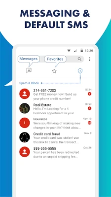 CallApp صرف نامعلوم کالرز کی شناخت تک محدود نہیں، بلکہ یہ فضول اور پریشان کن کالز کا مکمل خاتمہ بھی کرتا ہے۔ اس کا طاقتور سپیم کال بلاکر روبوکالز، ٹیلی مارکیٹنگ، اور فراڈ کالز کو خود بخود روک دیتا ہے۔ آپ ناپسندیدہ نمبرز کو بلیک لسٹ کر سکتے ہیں، اور ایک جدید فلٹر سسٹم آپ کی ضروریات کے مطابق بلاکنگ کو حسب ضرورت بناتا ہے۔ اس کے علاوہ، CallApp کو اپنے ڈیفالٹ ایس ایم ایس اور میسجنگ ایپ کے طور پر استعمال کرکے، آپ اپنے ٹیکسٹ پیغامات کو زیادہ لچکدار طریقے سے منظم کر سکتے ہیں۔ یہ نہ صرف اسپام ایس ایم ایس کو پہچانتا اور بلاک کرتا ہے بلکہ آپ کے پیغامات کو ذاتی، پسندیدہ اور اسپام کے زمروں میں خودکار طور پر ترتیب بھی دیتا ہے، تاکہ آپ کی مواصلات ہمیشہ منظم رہیں۔