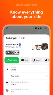 OTAXI کے ساتھ ہر سفر کے دوران ذہنی سکون کا تجربہ کریں۔ آپ حقیقی وقت میں اپنی سواری کی صورتحال کو ٹریک کر سکتے ہیں – گاڑی کے روانگی کے وقت، ڈرائیور کے راستے، اور نقشے پر گاڑی کے موجودہ مقام کو دیکھیں۔ آپ کو ڈرائیور کی آمد کا صحیح وقت اور منزل تک پہنچنے میں لگنے والا وقت معلوم ہو گا، تاکہ آپ اپنے دن کی منصوبہ بندی بہتر طریقے سے کر سکیں۔ مزید برآں، اپنی سواری سے پہلے ڈرائیور کے بارے میں مکمل معلومات حاصل کریں، بشمول ڈرائیور کا نام، ریٹنگ، گاڑی کا نمبر اور رنگ، تاکہ آپ ہمیشہ محفوظ محسوس کریں۔